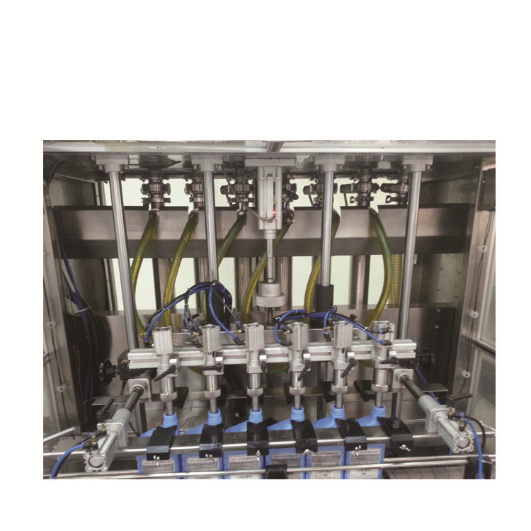 該機是液體生產線的主要部件,主要用於10〜1000ml灌裝,給料器蓋,封蓋。直線輸送,4/6/8/16泵線性灌裝,觸摸屏界面,頻率控制。具有缺瓶,無瓶,無蓋等功能,自動化程度高。灌裝不漏液,電磁振動使進料口蓋上裝有防塵罩。該機器設計合理,易於操作。 SUS304機體,GMP標準和CE認證。